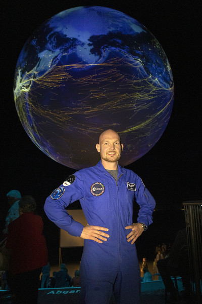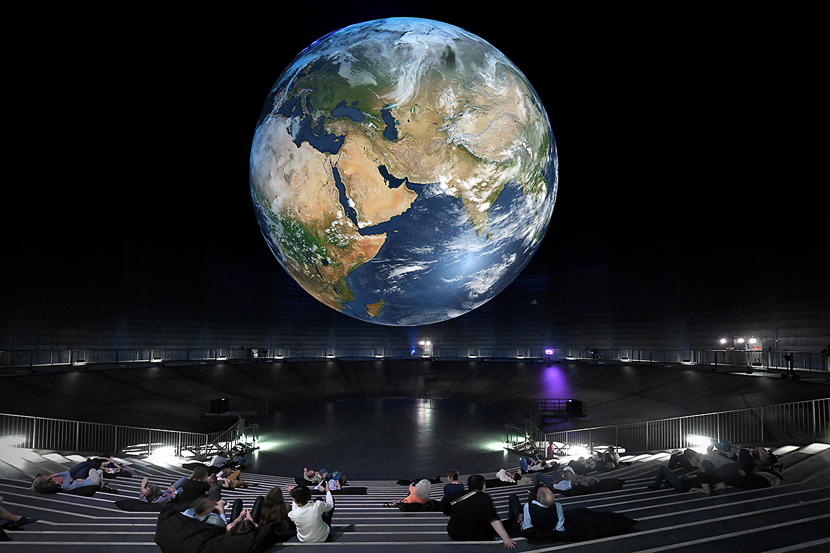 Vom All aus auf den eigenen Planeten schauen. Ein Gefühl das nur Astronaut*innen kennen. Nicht ganz: Denn auch unter der im Raum schwebenden Erdkugel im Oberhausener Gasometer ist dieser beeindruckende Blick möglich.