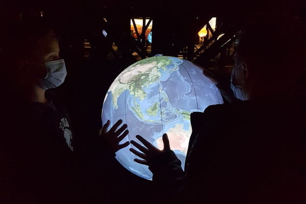 Schülerinnen und Schüler über und unter dem Blauen Planeten