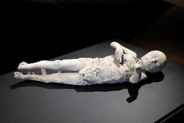 Das Exponat aus Pompeji zeigt ein drei- bis vierjähriges Kind, das bei dem Ausbruch des Vesuvs im Jahr 79 n. Chr. ums Leben kam.