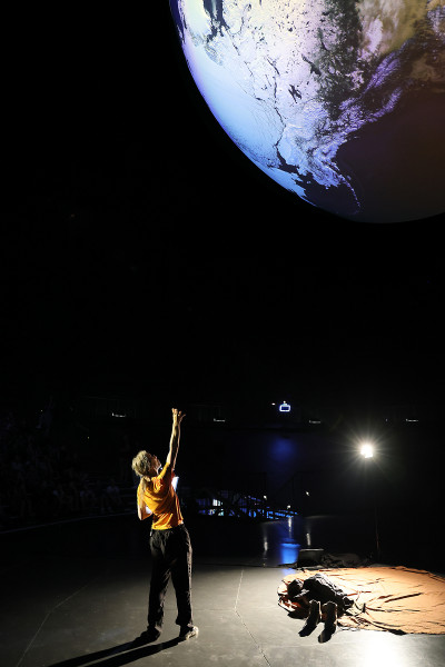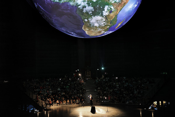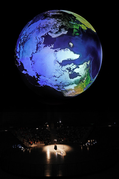 All diese Messwerte helfen, das komplexe Ökosystem unserer Erde zu verstehen – wissenschaftlich, aber auch emotional: Vereint in einer animierten Projektion entsteht auf der 20 Meter großen Erdkugel ein Gesamtkunstwerk voll bildgewaltiger Anmut. Unterlegt ist dieses visuelle Erlebnis mit speziell für die Ausstellung verfasster Musik des Österreichischen Komponisten Rupert Huber.
