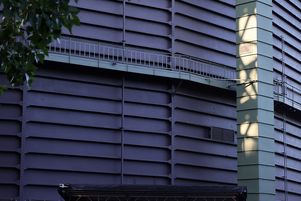 Im Inneren des Gasometers verläuft der Aufbau der Ausstellung nach Plan. Die Ausstellungsbilder hängen bereits an ihren Plätzen. Vorerst bleiben die Exponate allerdings in ihren schützenden Verpackungen. Ausstellungsaufbau im Juni 2021.