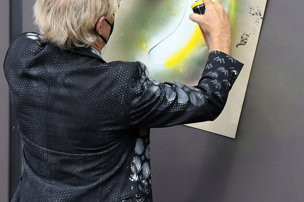 Am Dienstag kam der berühmte Künstler nun nach Oberhausen, um eine strahlend neue Banane an die Eingangstür zu sprayen. Fröhlich fruchtig hat diese ihren Platz eingenommen und erfreut ab sofort wieder die Besucher/innen der aktuellen Schau „Das zerbrechliche Paradies“ - wie natürlich auch aller kommenden Ausstellungen. Und auch Thomas Baumgärtel, der bei dem Termin tiefe Einblicke in seinen Werdegang gab, freute sich: „Die Banane zeichnet besondere Kulturorte aus, sie ist sozusagen mein persönliches Gütesiegel. Außerdem passt Street Art hervorragend zu Orten der Industriekultur wie dem Gasometer.“