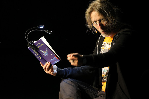 Für alle die diese großartigen Lesungen verpasst haben: Es gibt noch genau eine Möglichkeit Rainer Rudloff unter der spektakulären Kulisse des Erdglobus zu lauschen. Am Samstag, den 24. Juni, trägt der Schauspieler im Rahmen der Extraschicht stündlich unterhaltsame und skurrile Geschichten rund um die Natur, Shanghai oder eine Bergtour vor. Unter den für diesen Abend ausgewählten Werken finden sich auch Marc-Uwe Klings „QualityLand“ und das Reisebuch „Die Letzten ihrer Art“ von Kultautor Douglas Adams.