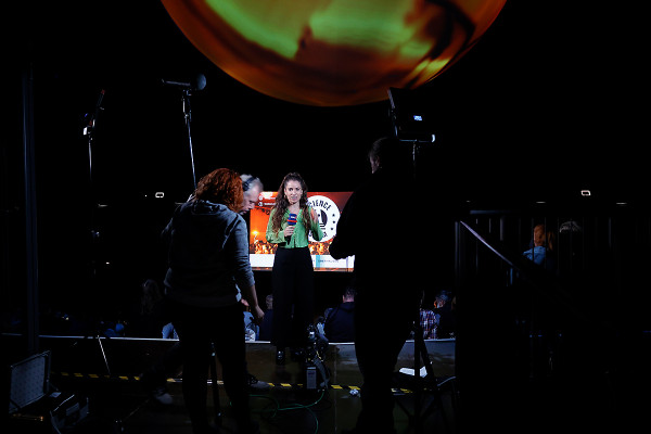 Das Wissenschaftsmagazin der ARD "Space Night science" drehte in der vergangenen Woche im Gasometer. Zu Gast bei Moderatorin Dr. Sibylle Anderl war Nils Sparwasser vom Deutschen Zentrum für Luft und Raumfahrt (DLR), der Fragen rund um das Thema Erdbeobachtung und Klimawandel beantwortete. Sparwasser zählt zum Kuratoren-Team der aktuellen Gasometer-Ausstellung "Das zerbrechliche Paradies" und gestaltete maßgeblich die Projektion der Erdskulptur.