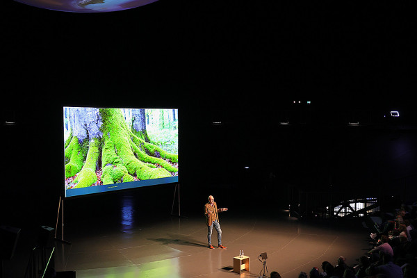 Am Donnerstag erzählte der Förster und Autor Peter Wohlleben faszinierende Geschichten über die höchst erstaunlichen Fähigkeiten von Bäumen - direkt unter der monumentalen Erdskulptur