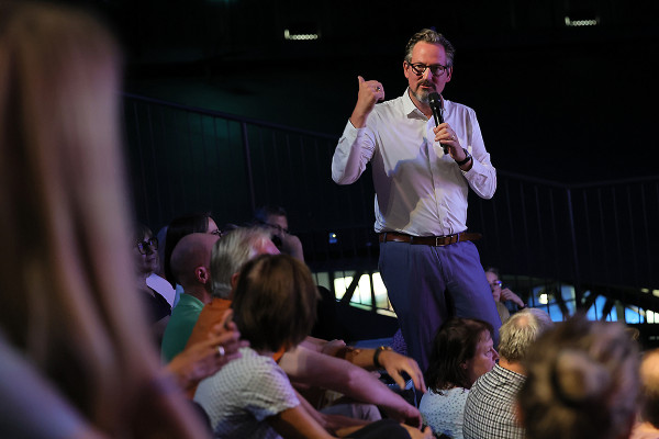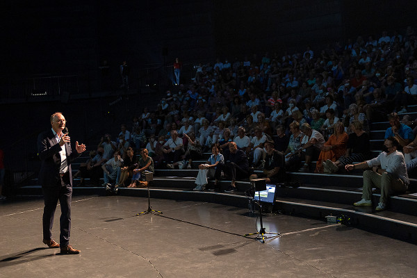 Am 23. August hatte der Gasometer einen alten Bekannten zu Besuch: Eckart von Hirschhausen war schon mehrfach zu Gast in der Ausstellung „Das zerbrechliche Paradies“. Nun sprach er unter der riesigen Erdkugel - und vor begeistertem Publikum - über den Zusammenhang von Klimakrise und menschlicher Gesundheit.