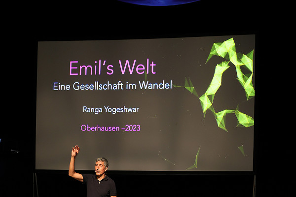 Unsere Zukunft wird die Gegenwart von Ranga Yogeshwars drei Enkelkindern sein - und so machte sich der beliebte Wissenschaftsjournalist am Mittwoch im Oberhausener Gasometer sehr persönliche Gedanken über deren Zukunft.