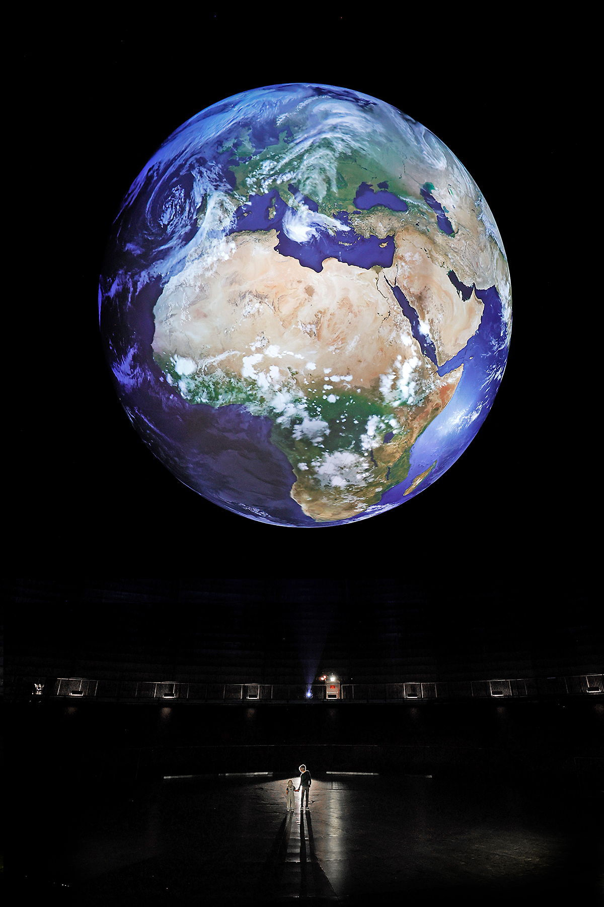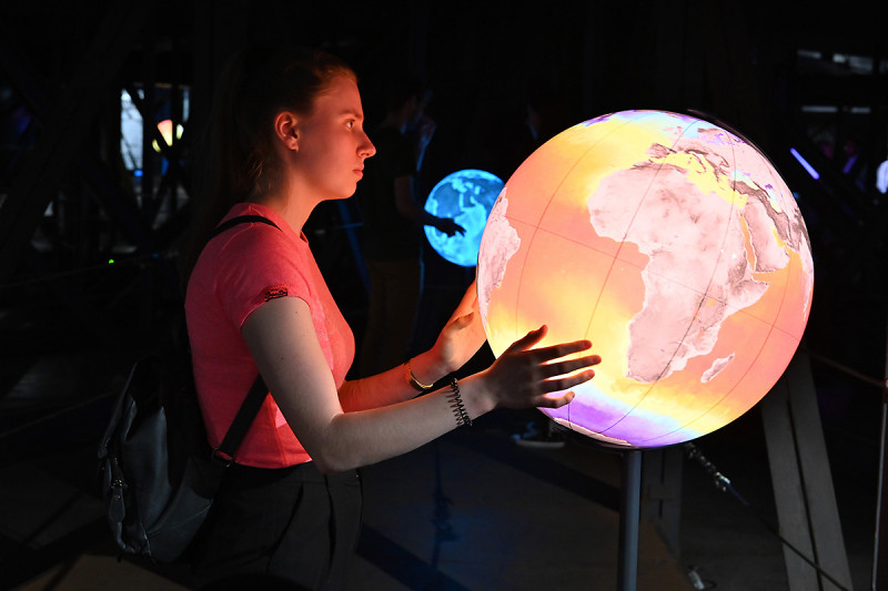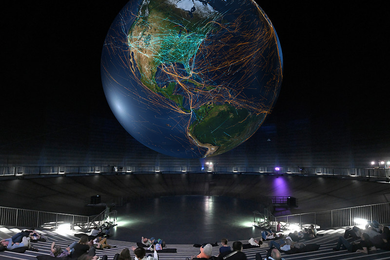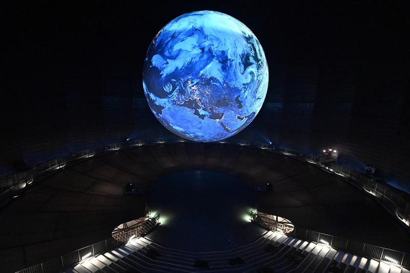 Höhepunkt der Ausstellung ist eine monumentale Skulptur der Erde, auf die neue, hochaufgelöste Satellitenbilder projiziert werden. „Wir präsentieren im 100 Meter hohen Luftraum des Gasometers – auf vielfachen Besucherwunsch – noch einmal die 20 Meter große Erdkugel aus der Erfolgsausstellung Wunder der Natur – allerdings komplett überarbeitet, mit neuen Inhalten und auf dem aktuellen Stand der Technik“, so Jeanette Schmitz. Mit Projektionen von 72 Millionen Pixeln Auflösung, das entspricht etwa dem Siebenfachen eines digitalen Kinos, wird die Erde virtuell zum Leben erweckt. „Der Blick aus dem All ermöglicht uns zu erkennen, wie einzigartig der Blaue Planet ist und lässt auch uns Wissenschaftler immer wieder staunen“, sagt Nils Sparwasser, Abteilungsleiter am Earth Observation Center des Deutschen Zentrum für Luft- und Raumfahrt (DLR). „Ich freue mich, dass wir das Publikum, insbesondere auch mit der Erdskulptur, an unserer Begeisterung für das Ökosystem Erde teilhaben lassen können.“