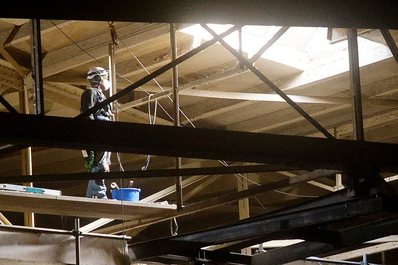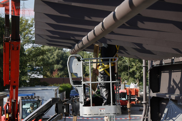 An der Rotunde auf dem Dach des Gasometers sind Schweißarbeiten notwendig geworden.