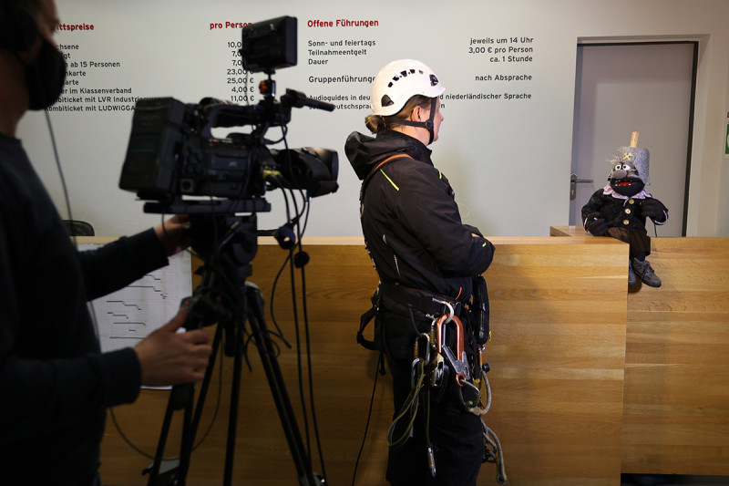 Von der Arbeit unseres Industriekletterers Peter Peilert, Höhenhandwerk, zeigte sich OPA HAUSEN tief beeindruckt.
