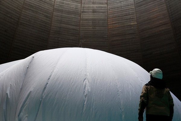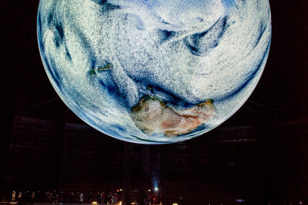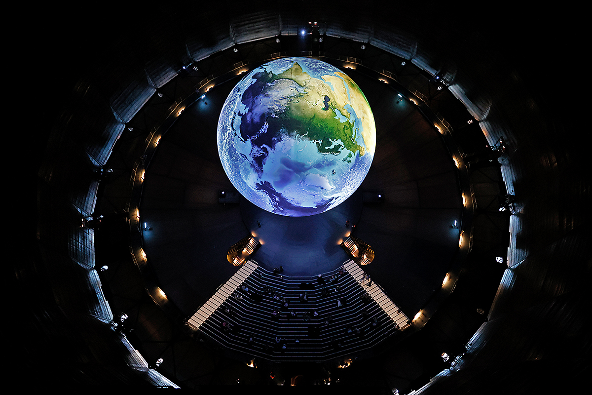 Eine runde Sache - riesige Erdkugel schwebt im Gasometer