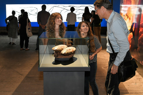 „Das zerbrechliche Paradies“ widmet sich dieser kaum vorstellbaren Katastrophe mit einem Relikt direkt aus Pompeji: dem Bambino. „Ein ganzes Jahr lang haben wir intensive Gespräche mit dem Parco Archeologico di Pompei geführt“ berichtet Jeanette Schmitz, Geschäftsführerin des Gasometers, über die Verhandlungen zur kostbaren Leihgabe aus Italien. Im Eingangsbereich der neuen Ausstellung verweilt nun der lebensechte Abguss des etwa 3 bis 4 Jahre alten Kindes. Zusammen mit seiner Familie hatte es wahrscheinlich Schutz unter einer Treppe im „Haus des Goldenen Armreifs“ gesucht - vergeblich.