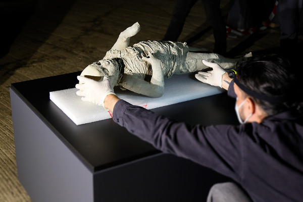 In vier Wochen öffnet „Das zerbrechliche Paradies“ im Oberhausener Gasometer seine Türen für Besucher/innen. Nun hat auch das „Bambino“ aus Pompeji seinen Platz in der Ausstellung eingenommen.