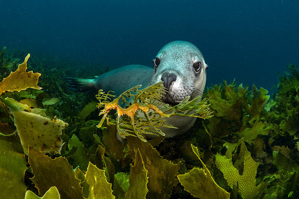 Foto: Großer Fetzenfisch und Australischer Seelöwe, Scott Portelli