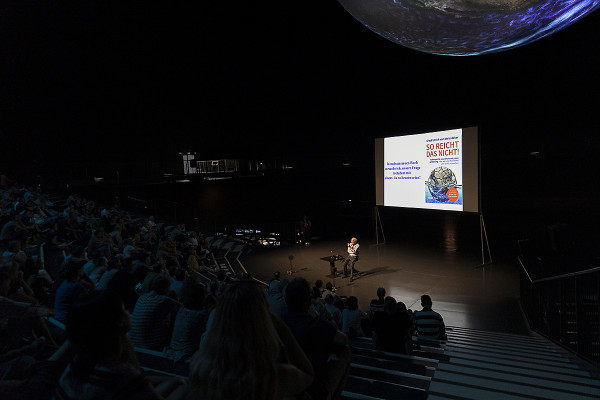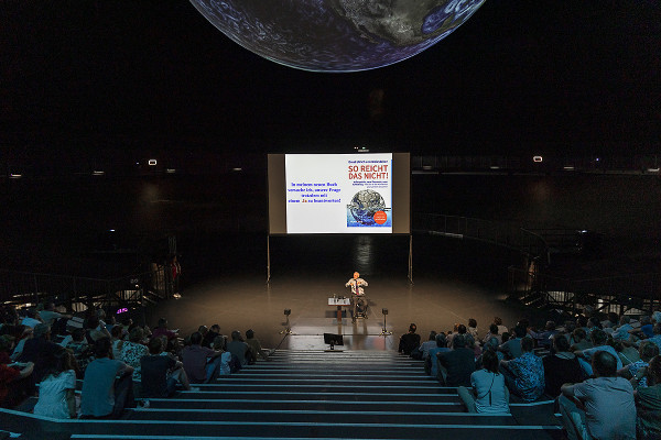 Kurzweilig und wissenschaftlich fundiert, ging der Journalist und Autor auf die zahlreichen Herausforderungen ein, die wir Emils Generation hinterlassen: Klimawandel, Artensterben und globale Instabilität. Oder wie Jeanette Schmitz, Geschäftsführerin der Gasometer Oberhausen GmbH, es am Ende des schönen Abends zusammenfasste: „Ein humorvoller und gleichzeitig sehr informativer Vortrag, der uns alle nachdenklich stimmt.“