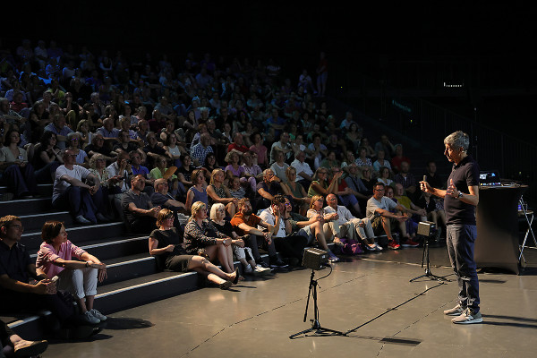 Am 23. August hatte der Gasometer einen alten Bekannten zu Besuch: Eckart von Hirschhausen war schon mehrfach zu Gast in der Ausstellung „Das zerbrechliche Paradies“. Nun sprach er unter der riesigen Erdkugel - und vor begeistertem Publikum - über den Zusammenhang von Klimakrise und menschlicher Gesundheit.